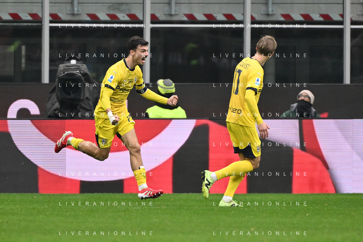 Milan vs Parma nella foto Enrico Delprato (Parma) esultanza dopo il gol del 2 a 1 Milano 26-01-2025 Stadio Giuseppe Meazza - San Siro Campionato Serie A Enilive - 22a giornata foto Roberto Garavaglia/Agenzia Aldo Liverani sas- AGENZIA ALDO LIVERANI SAS