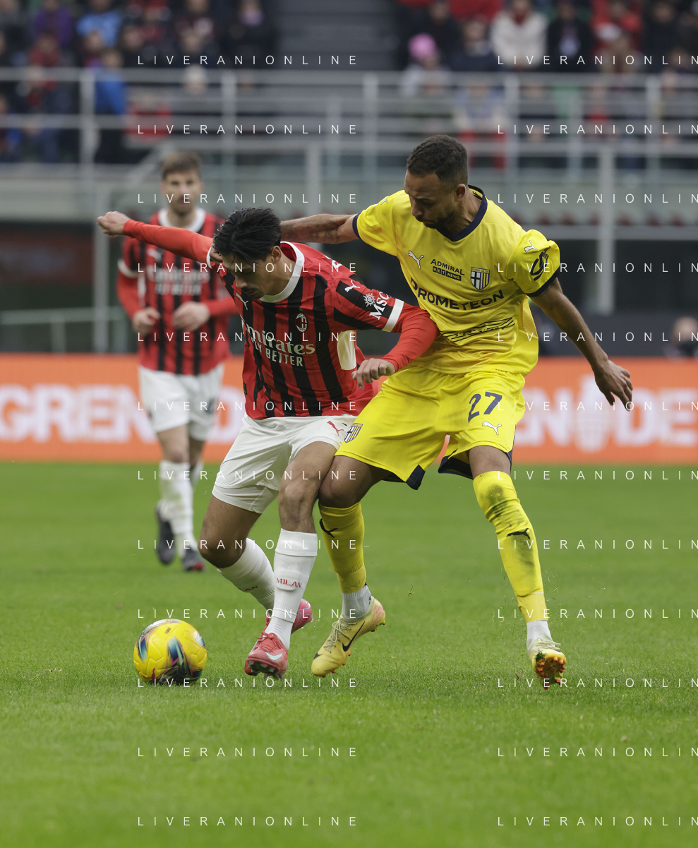 Milan vs Parma nella foto Samuel Chukwueze (Milan) e Valentin Mihaila (Parma) Milano 26-01-2025 Stadio Giuseppe Meazza - San Siro Campionato Serie A Enilive - 22a giornata foto Roberto Garavaglia/Agenzia Aldo Liverani sas- AGENZIA ALDO LIVERANI SAS