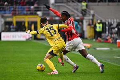 Milan vs Parma nella foto Matteo Cancellieri (Parma) e Rafael Leao (Milan) Milano 26-01-2025 Stadio Giuseppe Meazza - San Siro Campionato Serie A Enilive - 22a giornata foto Roberto Garavaglia/Agenzia Aldo Liverani sas- AGENZIA ALDO LIVERANI SAS