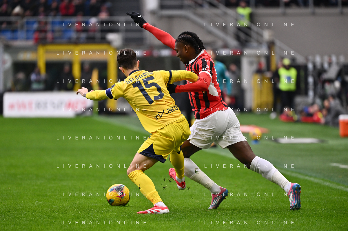 Milan vs Parma nella foto Rafael Leao (Milan) e Enrico Delprato (Parma) Milano 26-01-2025 Stadio Giuseppe Meazza - San Siro Campionato Serie A Enilive - 22a giornata foto Roberto Garavaglia/Agenzia Aldo Liverani sas- AGENZIA ALDO LIVERANI SAS