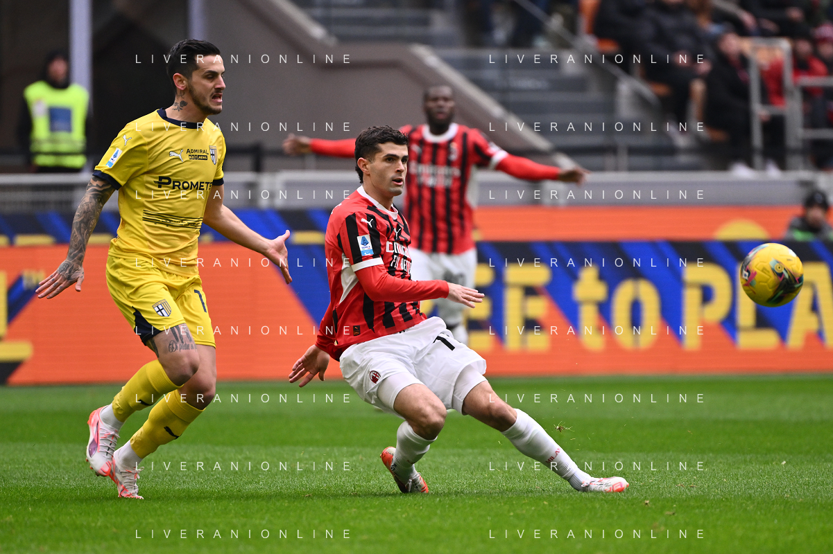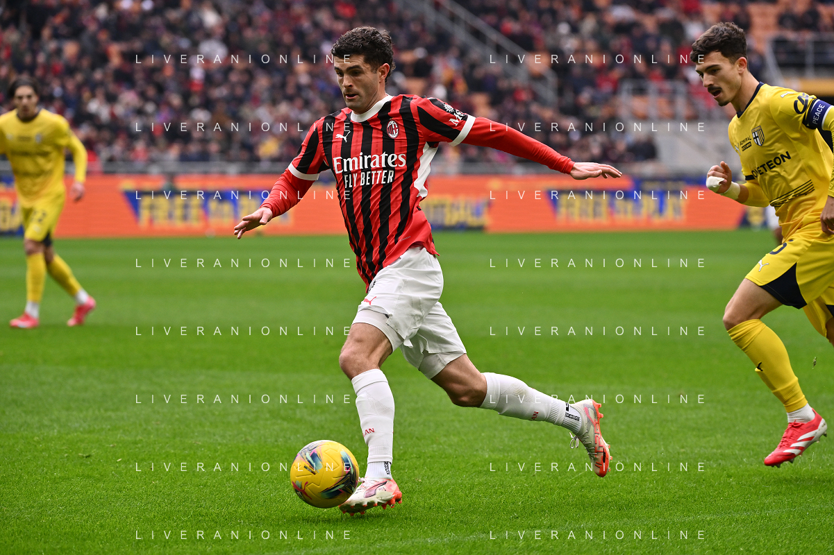 Milan vs Parma nella foto Christian Mate Pulisic (Milan) Milano 26-01-2025 Stadio Giuseppe Meazza - San Siro Campionato Serie A Enilive - 22a giornata foto Roberto Garavaglia/Agenzia Aldo Liverani sas- AGENZIA ALDO LIVERANI SAS