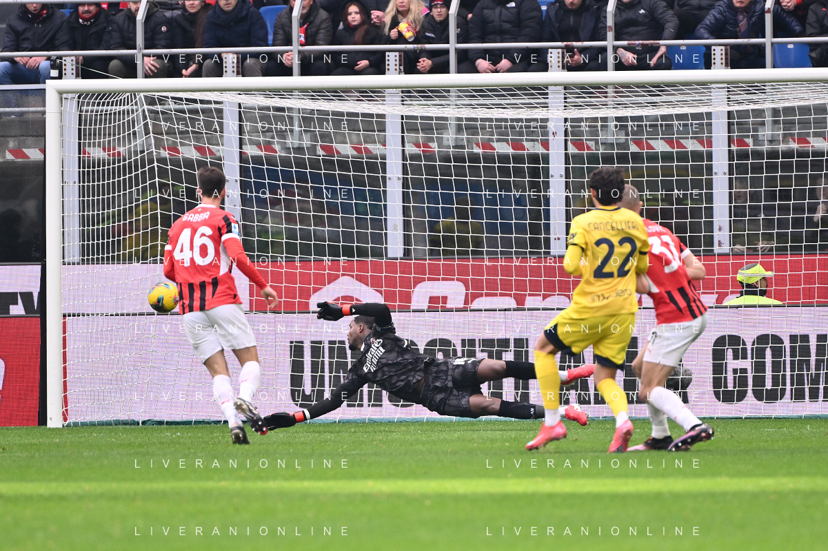 Milan vs Parma nella foto Matteo Cancellieri (Parma) segna il gol dell'1 a 0 Milano 26-01-2025 Stadio Giuseppe Meazza - San Siro Campionato Serie A Enilive - 22a giornata foto Roberto Garavaglia/Agenzia Aldo Liverani sas- AGENZIA ALDO LIVERANI SAS