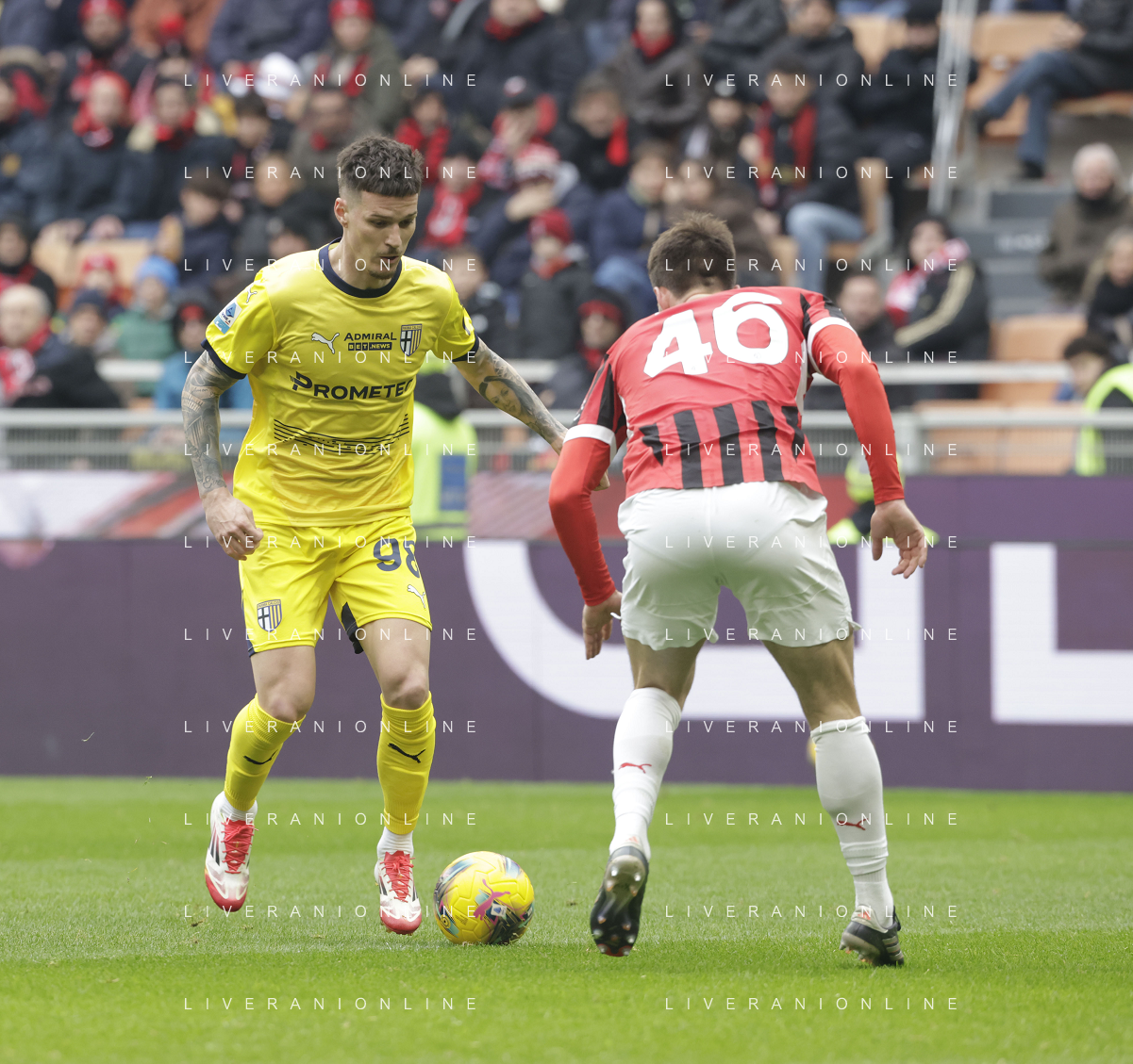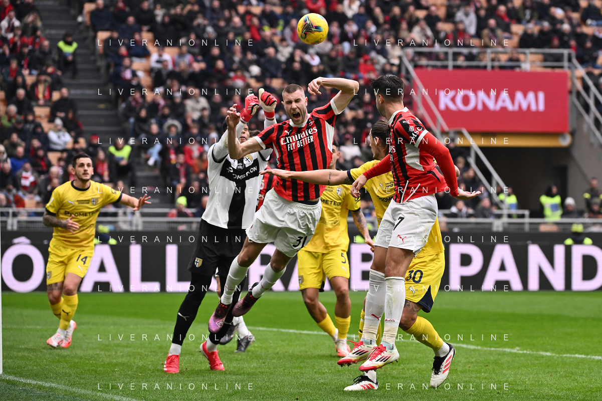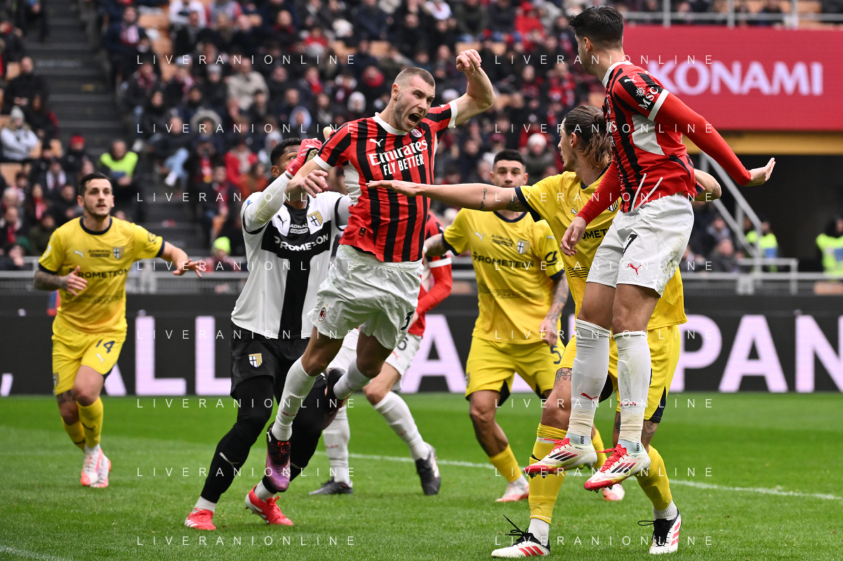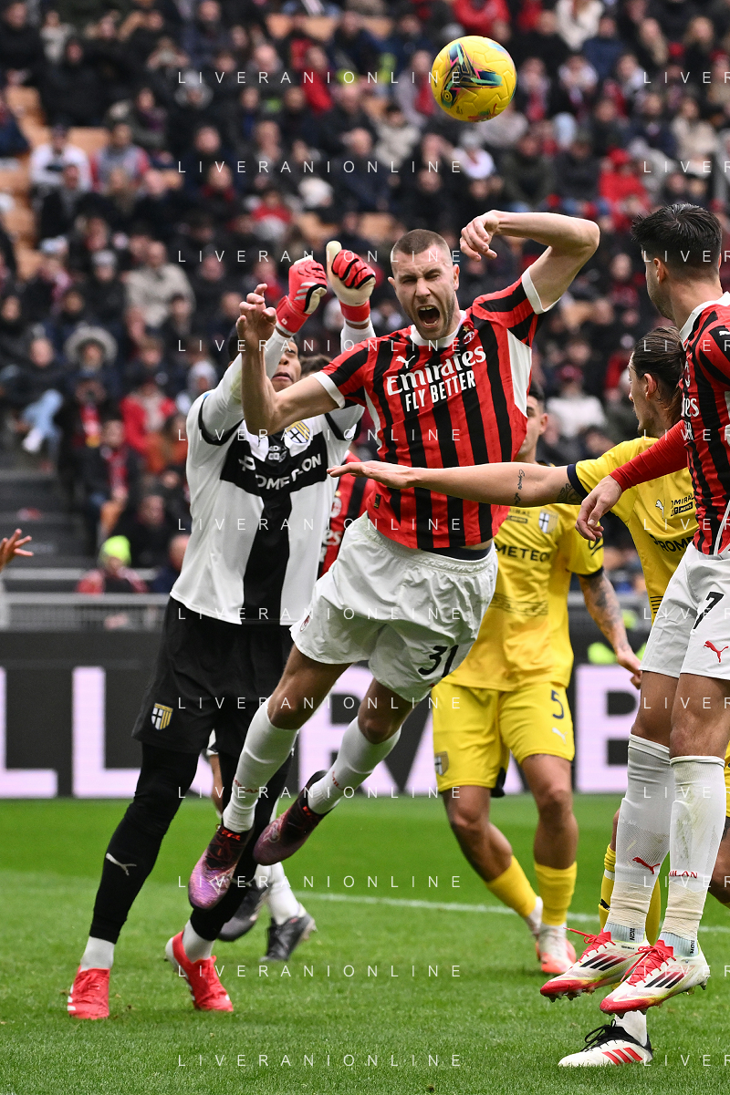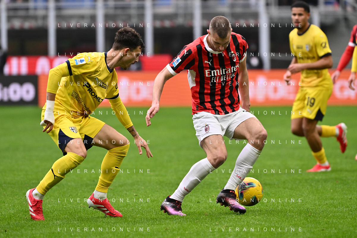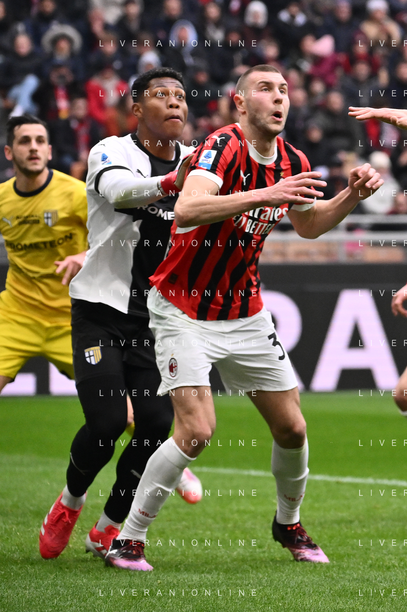 Milan vs Parma nella foto Enrico Delprato (Parma) e Strahinja Pavlovic (Milan) Milano 26-01-2025 Stadio Giuseppe Meazza - San Siro Campionato Serie A Enilive - 22a giornata foto Roberto Garavaglia/Agenzia Aldo Liverani sas- AGENZIA ALDO LIVERANI SAS