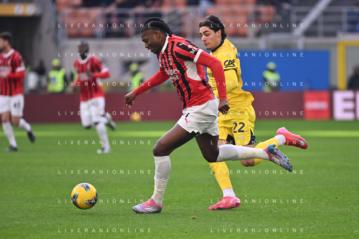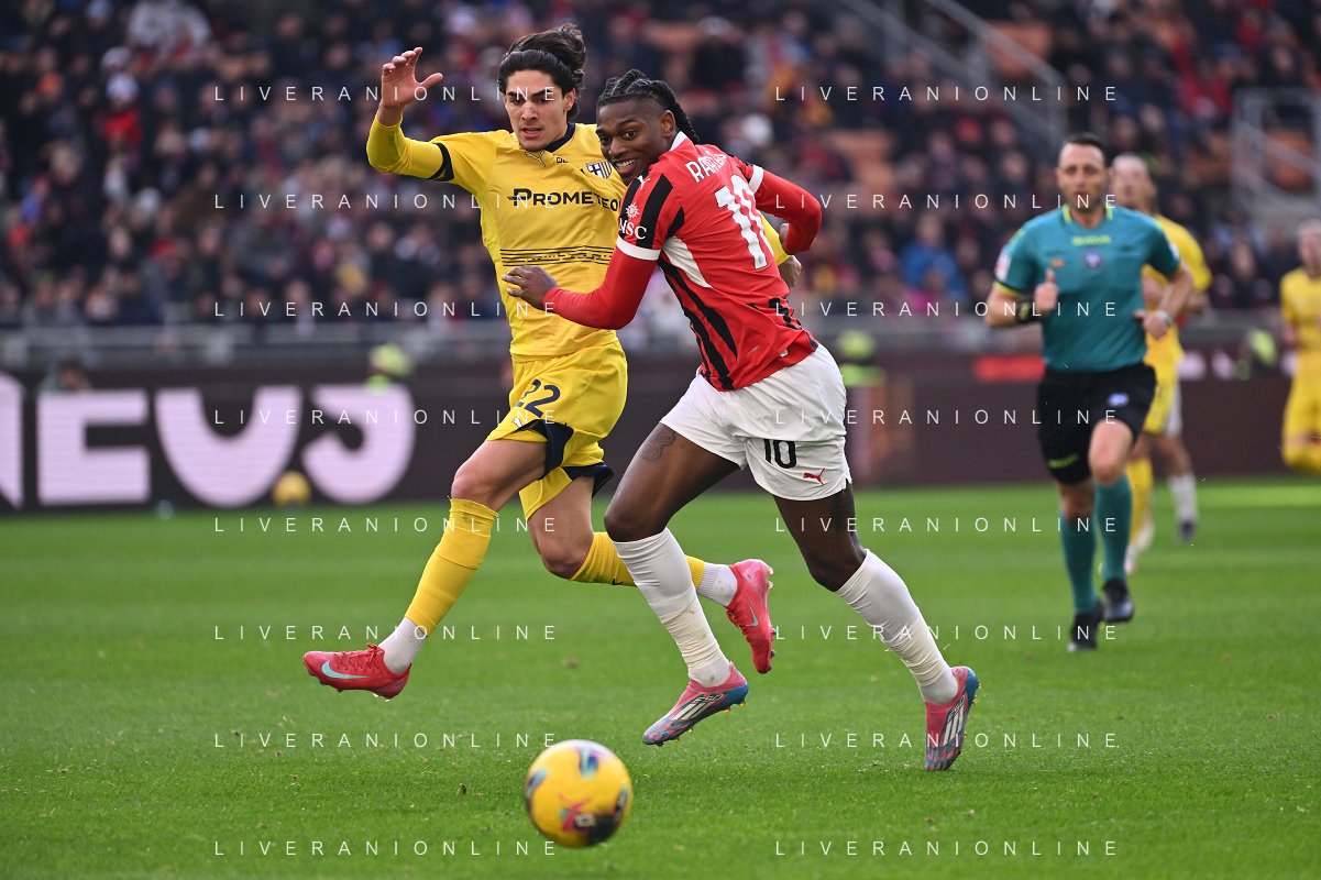 Milan vs Parma nella foto Rafael Leao (Milan) e Matteo Cancellieri (Parma) Milano 26-01-2025 Stadio Giuseppe Meazza - San Siro Campionato Serie A Enilive - 22a giornata foto Roberto Garavaglia/Agenzia Aldo Liverani sas- AGENZIA ALDO LIVERANI SAS