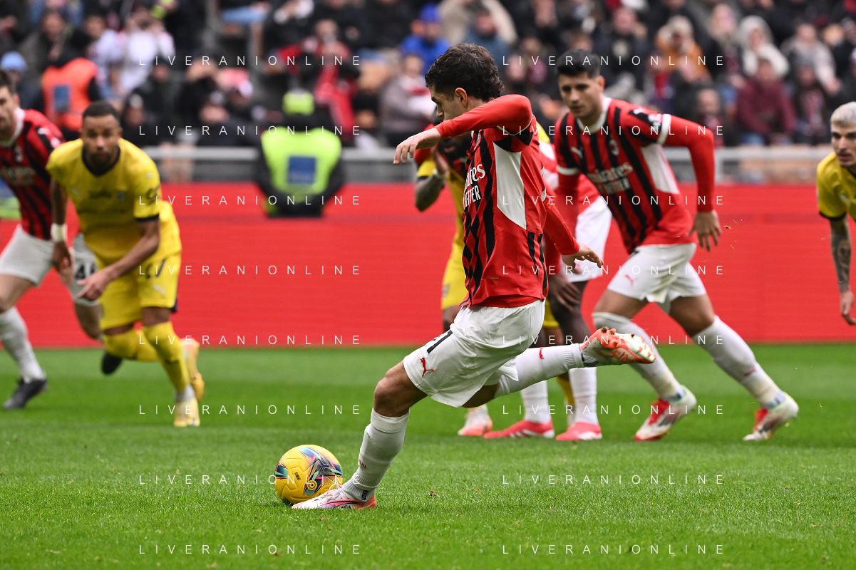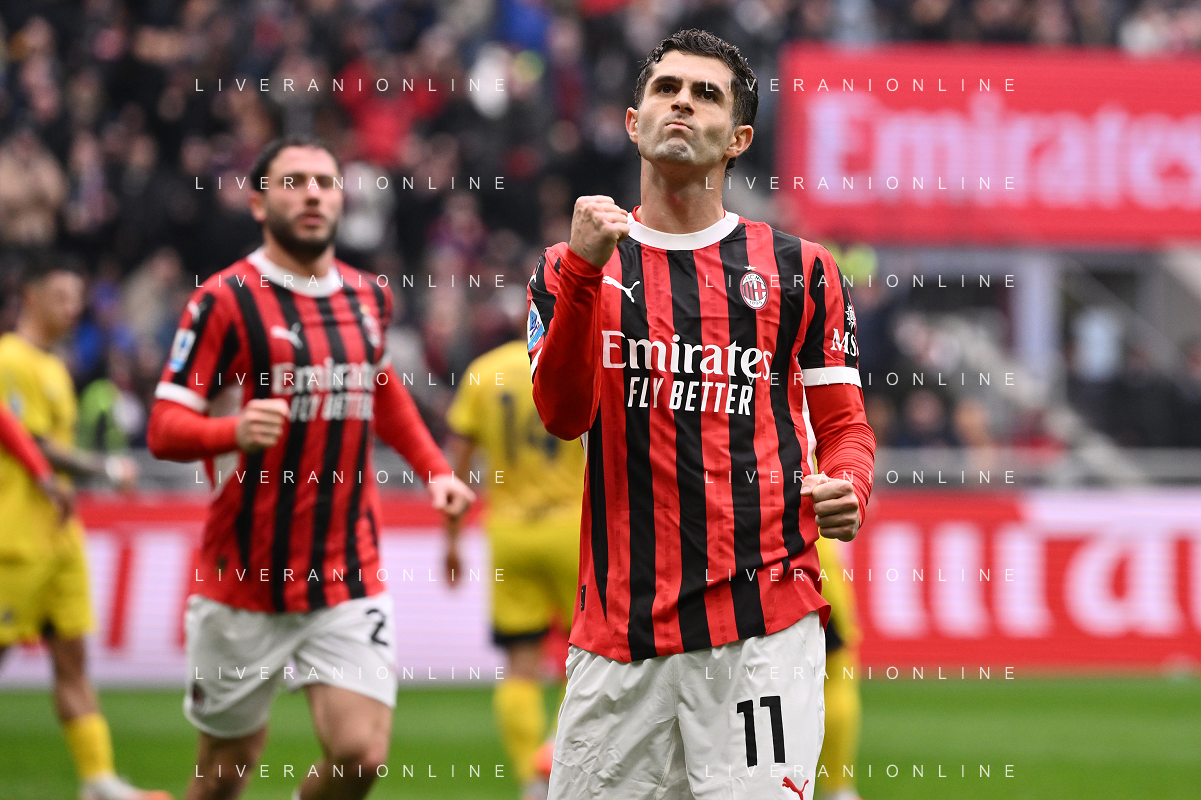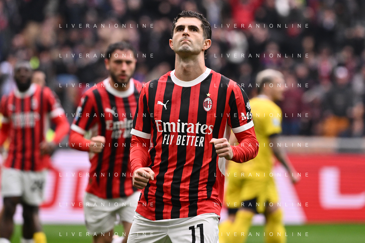 Milan vs Parma nella foto Christian Mate Pulisic (Milan) segna il gol dell'1 a 1 Milano 26-01-2025 Stadio Giuseppe Meazza - San Siro Campionato Serie A Enilive - 22a giornata foto Roberto Garavaglia/Agenzia Aldo Liverani sas- AGENZIA ALDO LIVERANI SAS