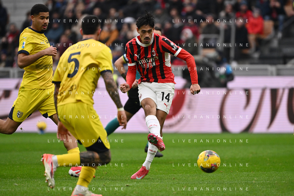 Milan vs Parma nella foto Tijjani Reijnders (Milan) al tiro Milano 26-01-2025 Stadio Giuseppe Meazza - San Siro Campionato Serie A Enilive - 22a giornata foto Roberto Garavaglia/Agenzia Aldo Liverani sas- AGENZIA ALDO LIVERANI SAS