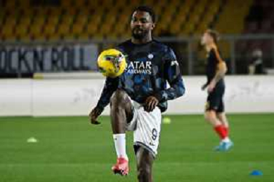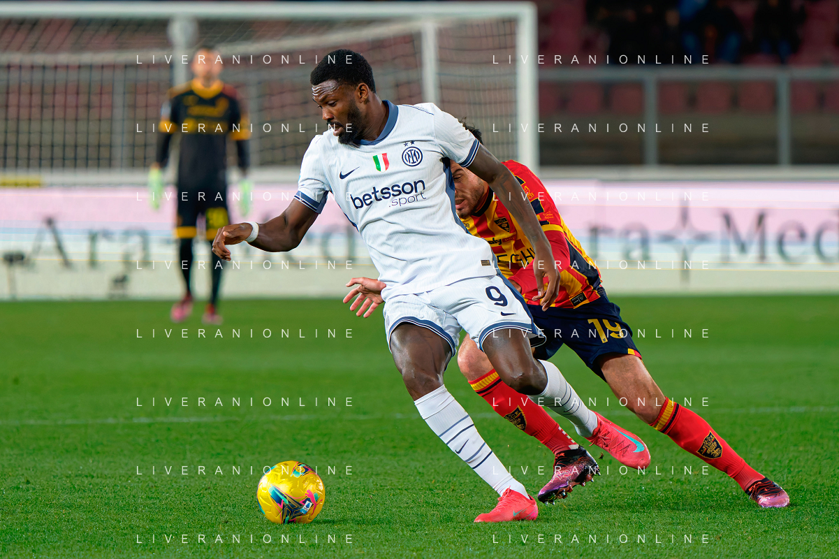 TVEM January 26, 2025 Lecce, Italy - US Lecce vs FC Inter - Italian soccer serie A 2024/25 - Via Del Mare Stadium. In the pic: Marcus Thuram of FC Inter in action against Gaby Jean of US Lecce FOTO EMMANUELE MASTRODONATO-AG ALDO LIVERANI SAS
