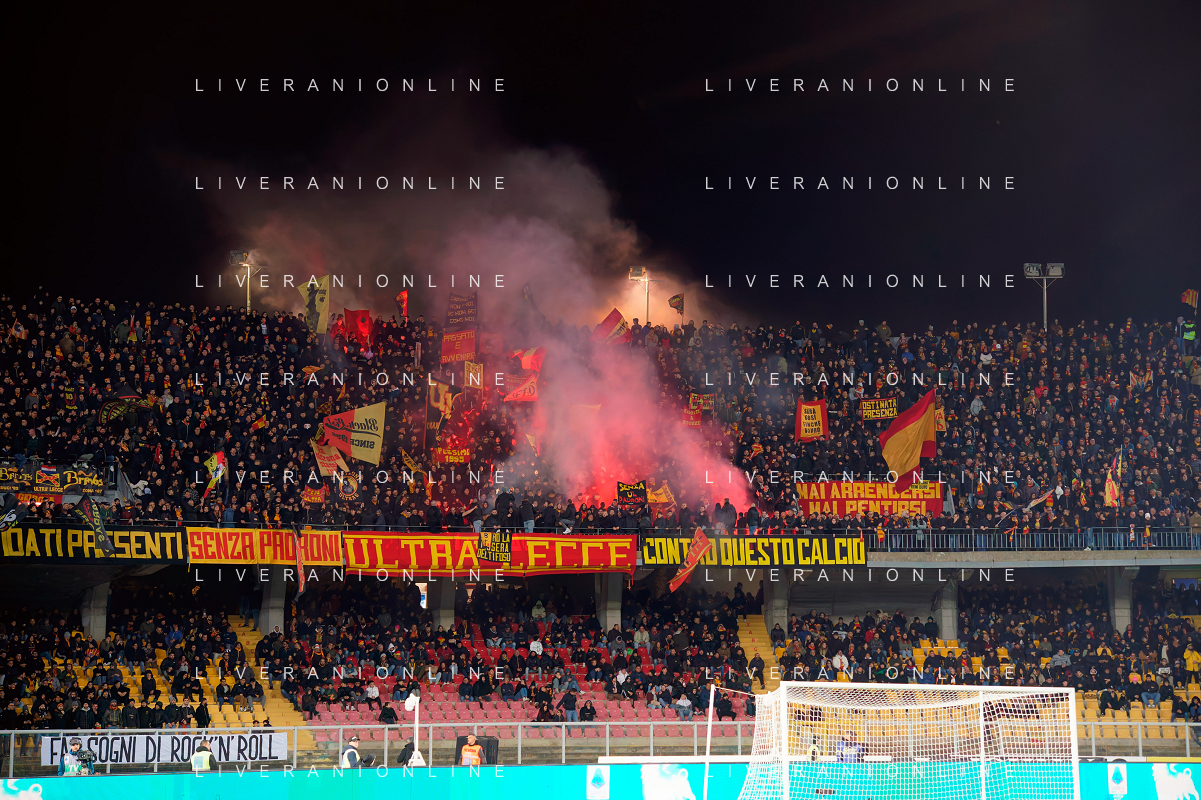 TVEM January 26, 2025 Lecce, Italy - US Lecce vs FC Inter - Italian soccer serie A 2024/25 - Via Del Mare Stadium. In the pic: Supporters of US Lecce FOTO EMMANUELE MASTRODONATO-AG ALDO LIVERANI SAS