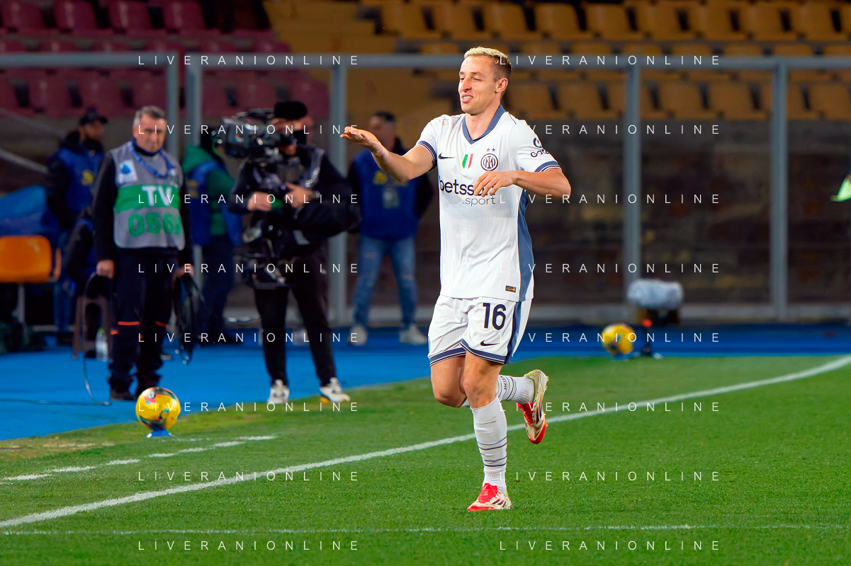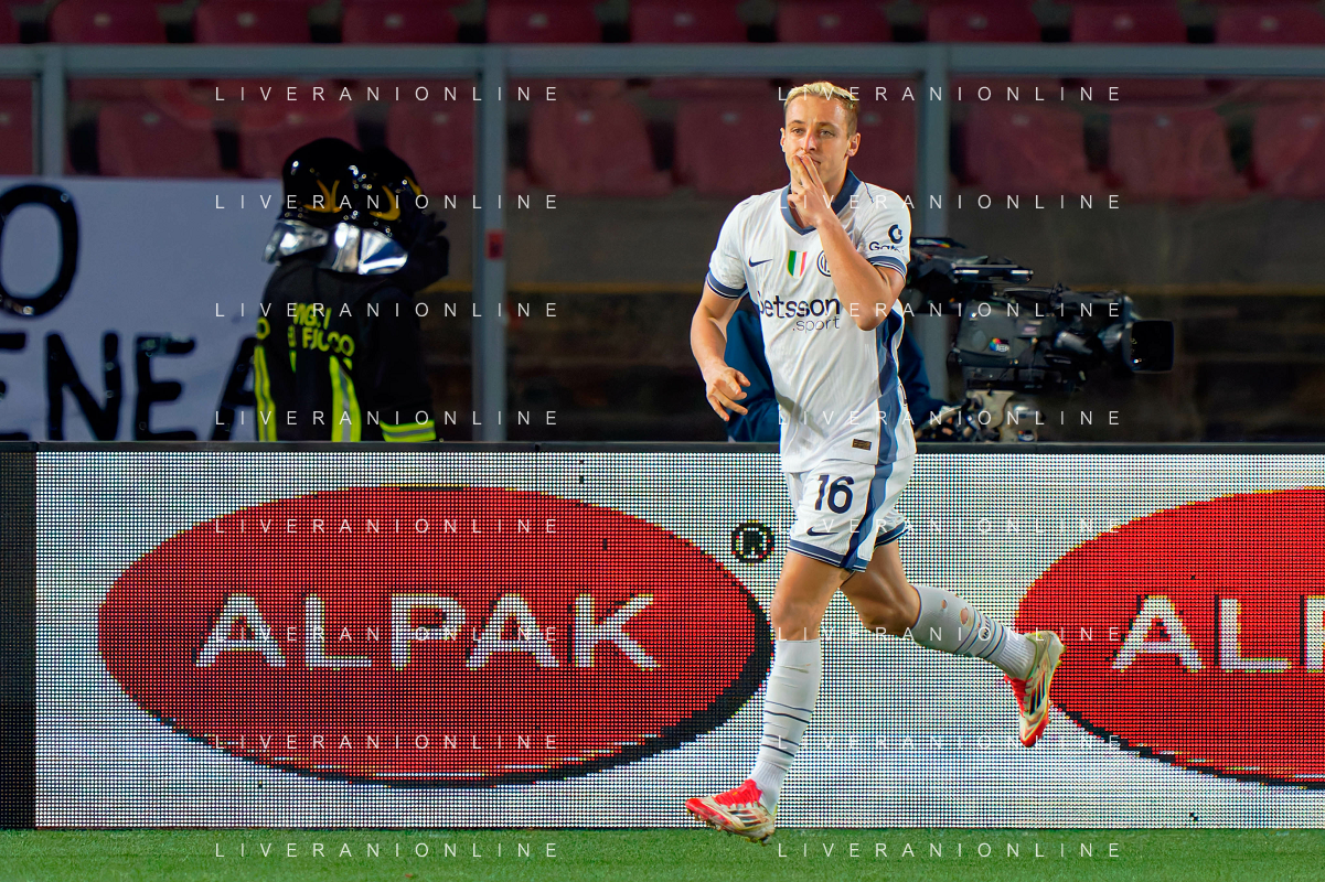 TVEM January 26, 2025 Lecce, Italy - US Lecce vs FC Inter - Italian soccer serie A 2024/25 - Via Del Mare Stadium. In the pic: Davide Frattesi of FC Inter celebrates after scoring a goal FOTO EMMANUELE MASTRODONATO-AG ALDO LIVERANI SAS