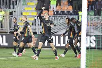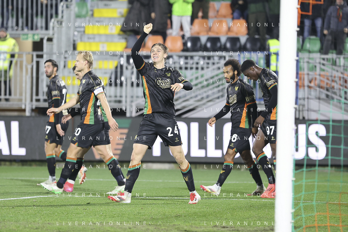 Alessio Zerbin of Venezia FC celebrates after scoring during Venezia FC vs Hellas Verona FC, 22° Serie A Enilive 2024-25 game at Pier Luigi Penzo stadium in Venezia (VE), Italy, on January 27, 2025. (Photo by Davide Casentini) AG ALDO LIVERANI SAS