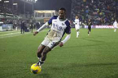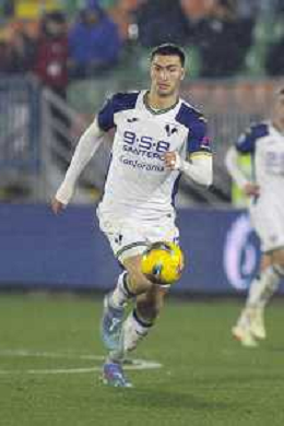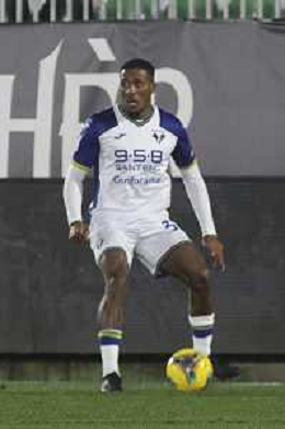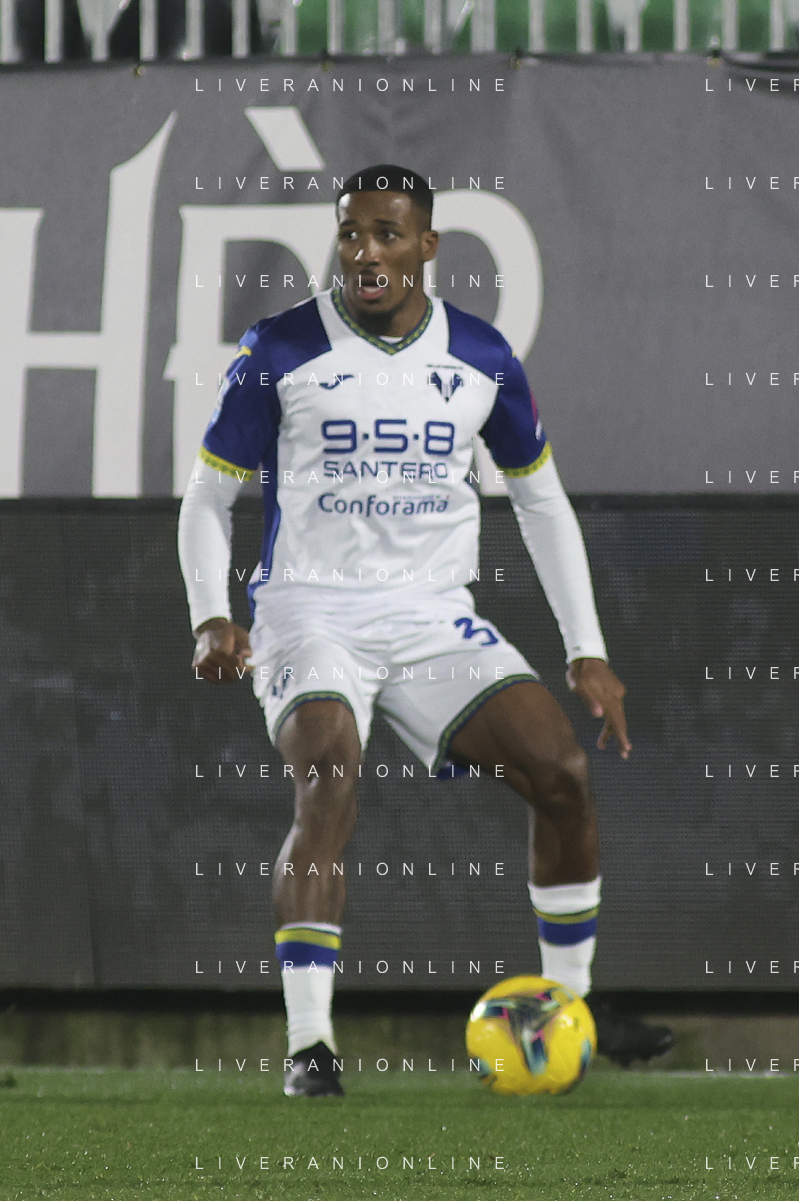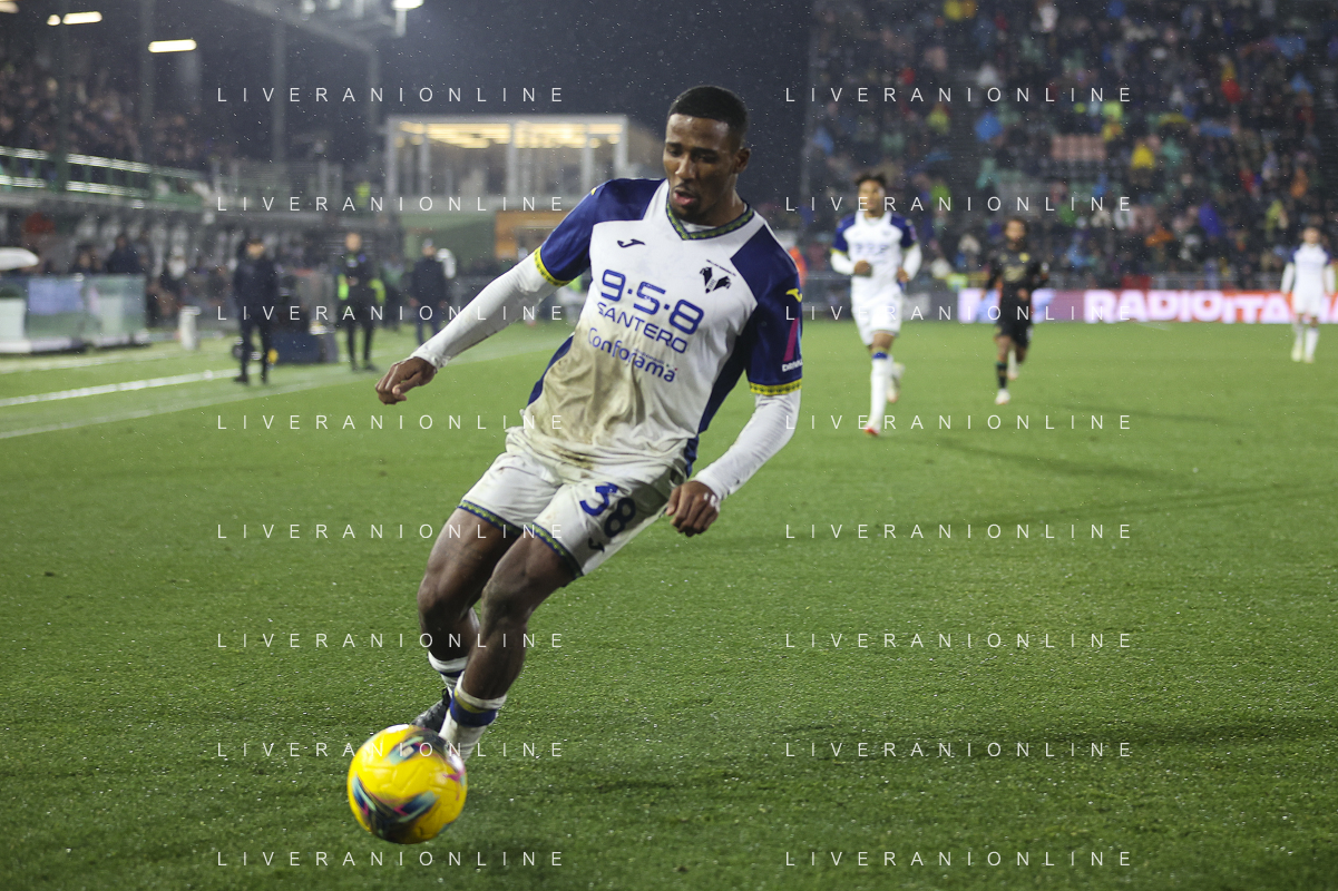 Jackson Tchatchoua of Hellas Verona FC play the ballc during Venezia FC vs Hellas Verona FC, 22° Serie A Enilive 2024-25 game at Pier Luigi Penzo stadium in Venezia (VE), Italy, on January 27, 2025. (Photo by Davide Casentini) AG ALDO LIVERANI SAS