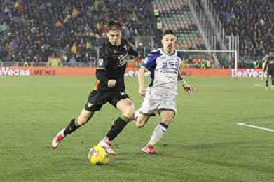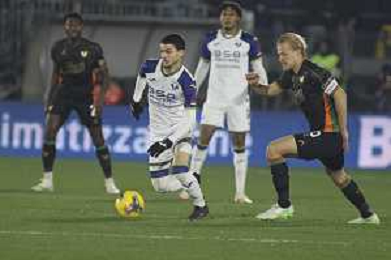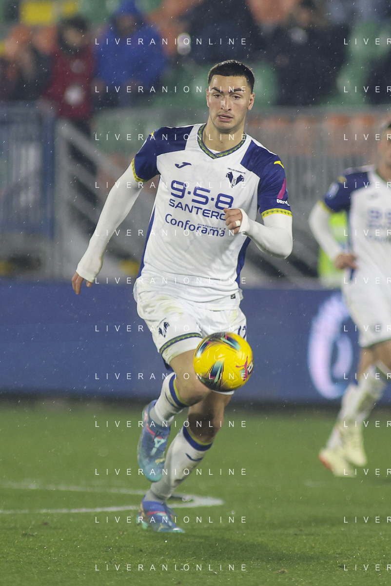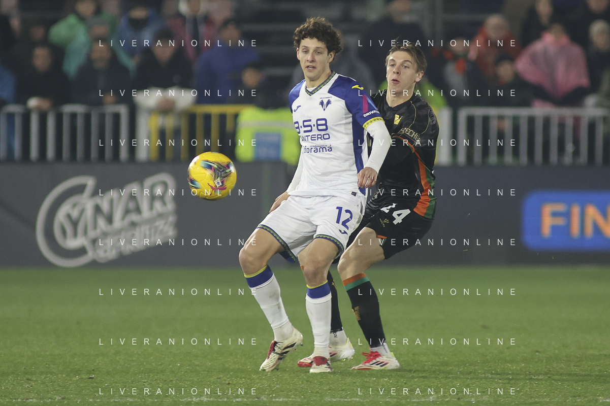 Diego Coppola of Hellas Verona FC play the ball during Venezia FC vs Hellas Verona FC, 22° Serie A Enilive 2024-25 game at Pier Luigi Penzo stadium in Venezia (VE), Italy, on January 27, 2025. (Photo by Davide Casentini) AG ALDO LIVERANI SAS