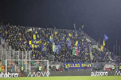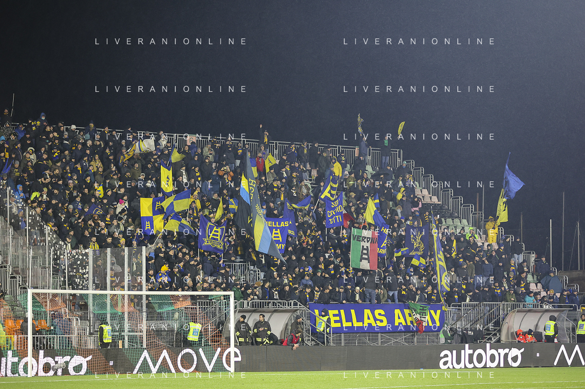 Hellas Verona fans during Venezia FC vs Hellas Verona FC, 22° Serie A Enilive 2024-25 game at Pier Luigi Penzo stadium in Venezia (VE), Italy, on January 27, 2025. (Photo by Davide Casentini) AG ALDO LIVERANI SAS