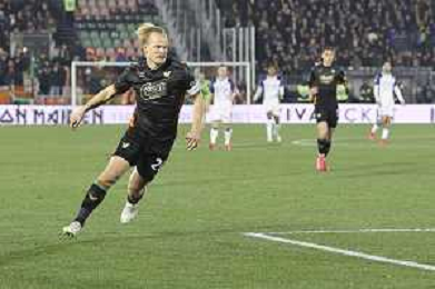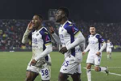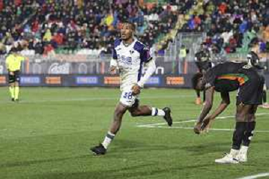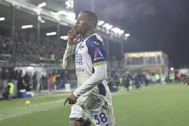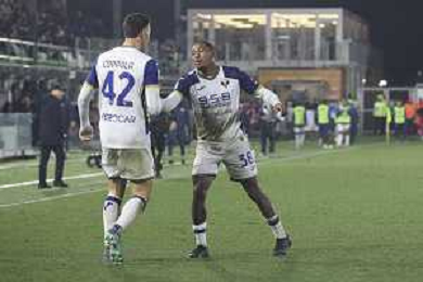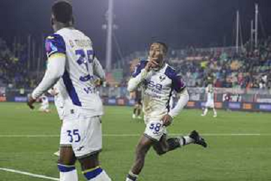 Jackson Tchatchoua of Hellas Verona FC scores a goal during Venezia FC vs Hellas Verona FC, 22° Serie A Enilive 2024-25 game at Pier Luigi Penzo stadium in Venezia (VE), Italy, on January 27, 2025. (Photo by Davide Casentini)- AGENZIA ALDO LIVERANI SAS