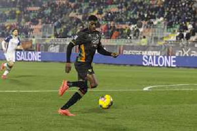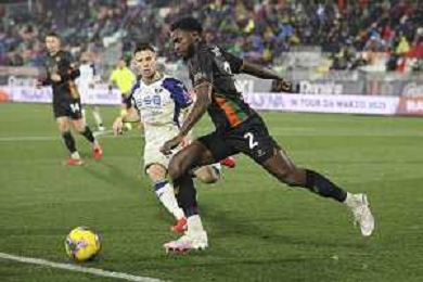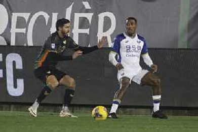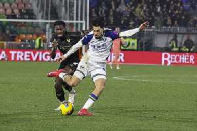 Fali Cande’ of Venezia FC play the ball during Venezia FC vs Hellas Verona FC, 22° Serie A Enilive 2024-25 game at Pier Luigi Penzo stadium in Venezia (VE), Italy, on January 27, 2025. (Photo by Davide Casentini)- AGENZIA ALDO LIVERANI SAS