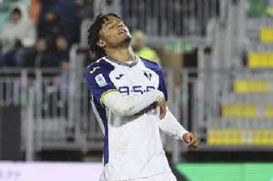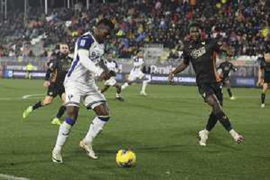Amin Sarr of Hellas Verona FC expresses disappointment during Venezia FC vs Hellas Verona FC, 22° Serie A Enilive 2024-25 game at Pier Luigi Penzo stadium in Venezia (VE), Italy, on January 27, 2025. (Photo by Davide Casentini)- AGENZIA ALDO LIVERANI SAS