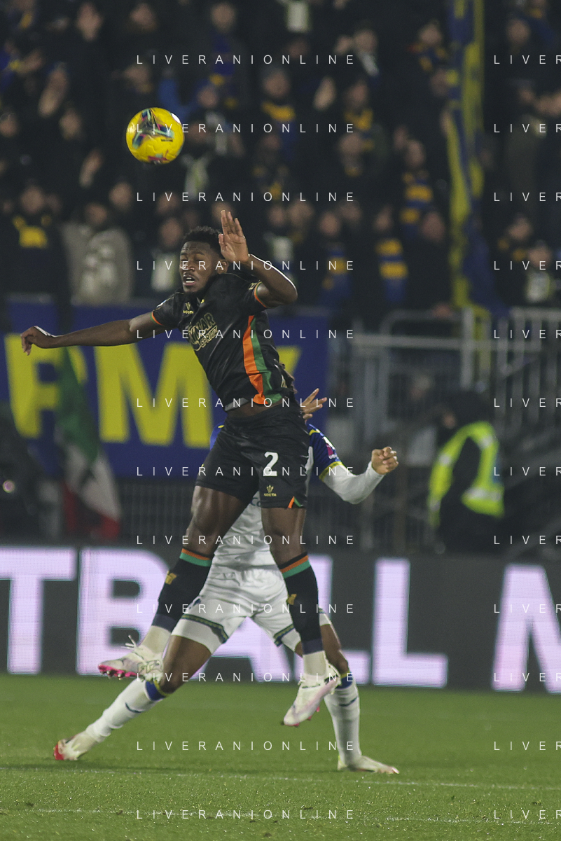 fa02 heads the ball during Venezia FC vs Hellas Verona FC, 22° Serie A Enilive 2024-25 game at Pier Luigi Penzo stadium in Venezia (VE), Italy, on January 27, 2025. (Photo by Davide Casentini) AG ALDO LIVERANI SAS