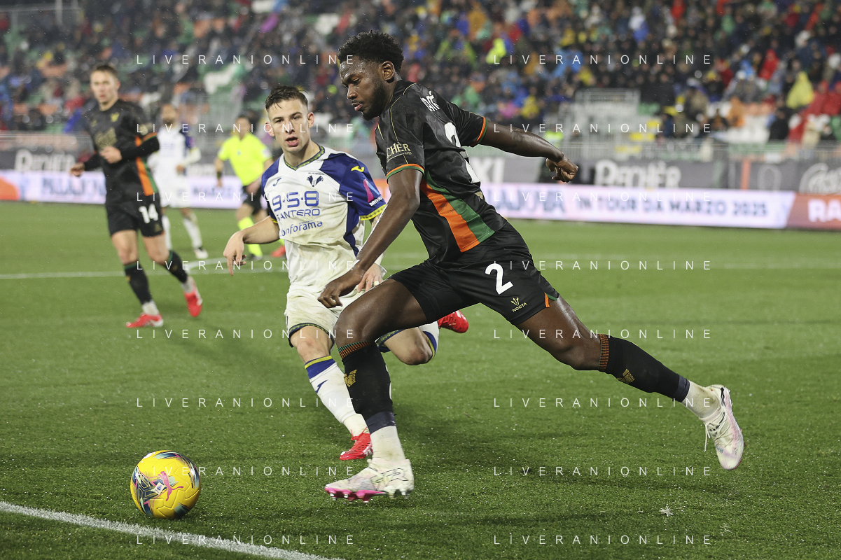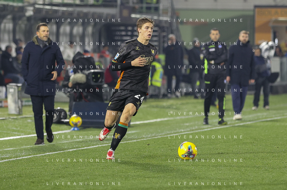 Alessio Zerbin of Venezia FCplay the ball during Venezia FC vs Hellas Verona FC, 22° Serie A Enilive 2024-25 game at Pier Luigi Penzo stadium in Venezia (VE), Italy, on January 27, 2025. (Photo by Davide Casentini)- AGENZIA ALDO LIVERANI SAS