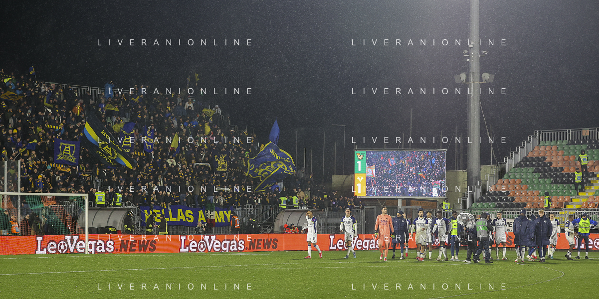 Tifosi - Hellas Verona players applaud the fans following the final whistle during Venezia FC vs Hellas Verona FC, 22° Serie A Enilive 2024-25 game at Pier Luigi Penzo stadium in Venezia (VE), Italy, on January 27, 2025. (Photo by Davide Casentini)- AGENZIA ALDO LIVERANI SAS