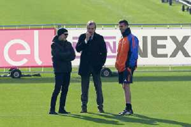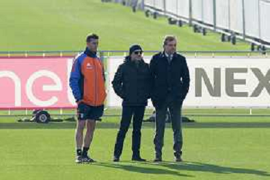 TVMV-Torino 28.01.2025 Continassa © Manuela Viganti/Agenzia Aldo Liverani Allenamento Juventus Rifinitura partita Champions League Juventus vs Benfica Nella foto: thiago motta, maurizo scanavino e cristiano giuntoli ©Viganti- AGENZIA ALDO LIVERANI SAS
