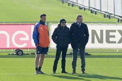 TVMV-Torino 28.01.2025 Continassa © Manuela Viganti/Agenzia Aldo Liverani Allenamento Juventus Rifinitura partita Champions League Juventus vs Benfica Nella foto: thiago motta, maurizo scanavino e cristiano giuntoli osservano il gruppo durante l’allenamento ©Viganti- AGENZIA ALDO LIVERANI SAS