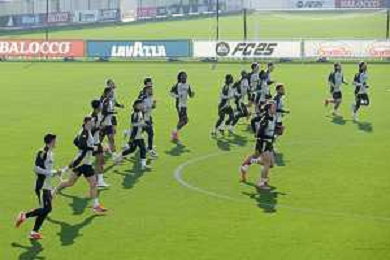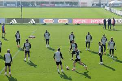 TVMV-Torino 28.01.2025 Continassa © Manuela Viganti/Agenzia Aldo Liverani Allenamento Juventus Rifinitura partita Champions League Juventus vs Benfica Nella foto: il gruppo juventus durante l’allenamento ©Viganti- AGENZIA ALDO LIVERANI SAS