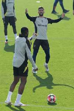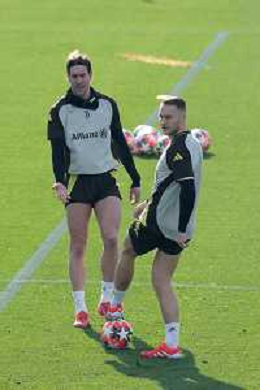 TVMV-Torino 28.01.2025 Continassa © Manuela Viganti/Agenzia Aldo Liverani Allenamento Juventus Rifinitura partita Champions League Juventus vs Benfica Nella foto: dusan vlahovic e nico gonzalez ©Viganti- AGENZIA ALDO LIVERANI SAS
