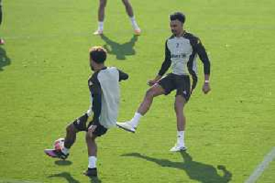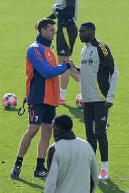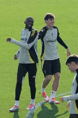 TVMV-Torino 28.01.2025 Continassa © Manuela Viganti/Agenzia Aldo Liverani Allenamento Juventus Rifinitura partita Champions League Juventus vs Benfica Nella foto: samuel mbangula e randal kolo muani ©Viganti- AGENZIA ALDO LIVERANI SAS