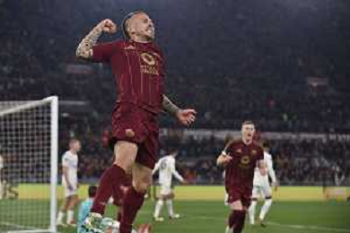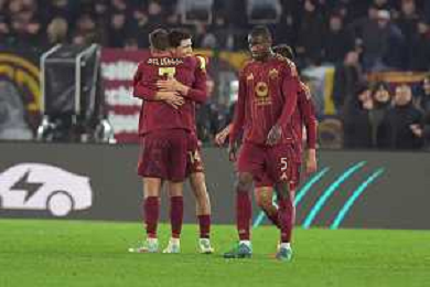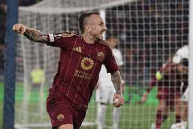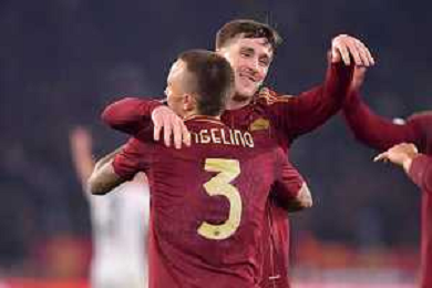 Roma vs Eintracht Francoforte Europa League - 8 Giornata Stadio Olimpico - Roma 30-01-2025 nella foto Esultanza Angelino ©Federico Gaetano - AGENZIA ALDO LIVERANI SAS