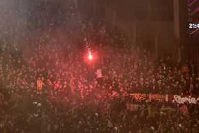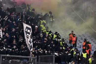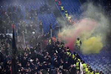 Roma vs Eintracht Francoforte Europa League - 8 Giornata Stadio Olimpico - Roma 30-01-2025 nella foto Incidenti tra i tifosi sugli spalti - fumogeni ©Federico Gaetano - AGENZIA ALDO LIVERANI SAS