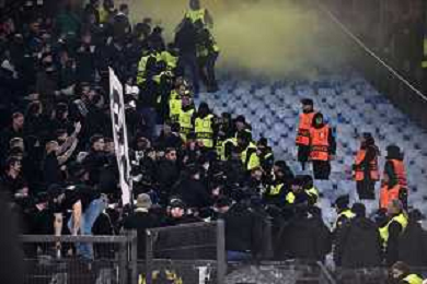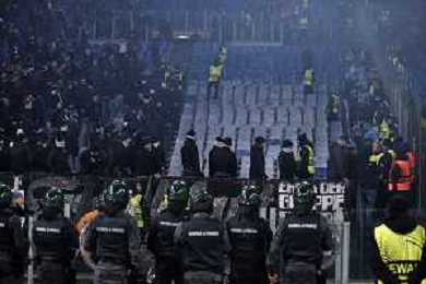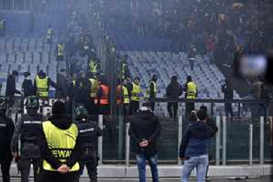Roma vs Eintracht Francoforte Europa League - 8 Giornata Stadio Olimpico - Roma 30-01-2025 nella foto Incidenti tra i tifosi sugli spalti ©Federico Gaetano - AGENZIA ALDO LIVERANI SAS