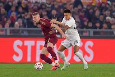 Roma vs Eintracht Francoforte Europa League - 8 Giornata Stadio Olimpico - Roma 30-01-2025 nella foto Angelino e Kristensen ©Federico Gaetano - AGENZIA ALDO LIVERANI SAS