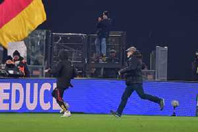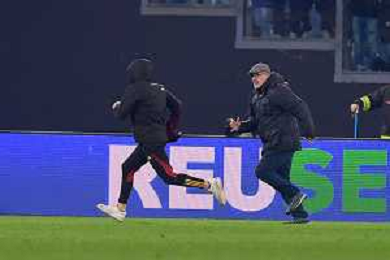 Roma vs Eintracht Francoforte Europa League - 8 Giornata Stadio Olimpico - Roma 30-01-2025 nella foto Tifoso della Roma invade per prendere una maglia e viene inseguito ©Federico Gaetano - AGENZIA ALDO LIVERANI SAS