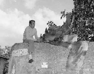DOZZA MURO DIPINTO ANNI 70 GERMANO SARTELLI CON LA SUA SCULTURA ©SANNA - AGENZIA ALDO LIVERANI SAS