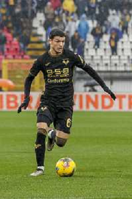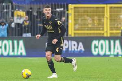 Daniele Ghilardi of Hellas Verona FC play the ball during AC Monza vs Hellas Verona FC, 23° Serie A Enilive 2024-25 game at U-Power stadium in Monza (MB), Italy, on February 01, 2025. (Photo by Davide Casentini)- AGENZIA ALDO LIVERANI SAS