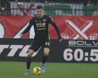 Flavius Daniliuc of Hellas Verona play the ball during AC Monza vs Hellas Verona FC, 23° Serie A Enilive 2024-25 game at U-Power stadium in Monza (MB), Italy, on February 01, 2025. (Photo by Davide Casentini)- AGENZIA ALDO LIVERANI SAS