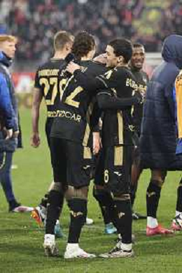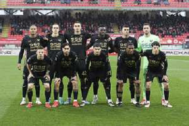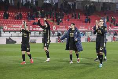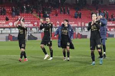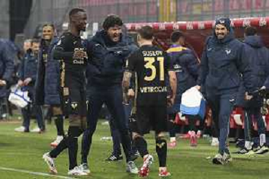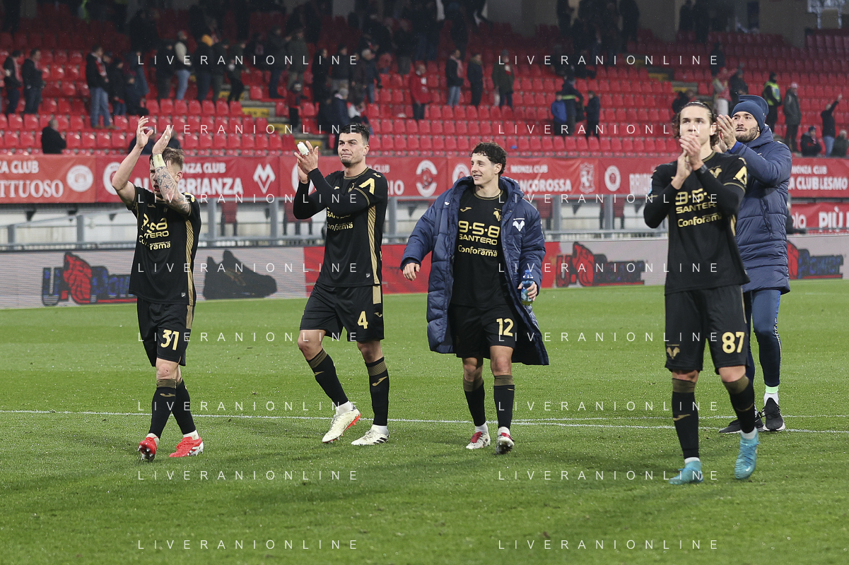 Hellas Verona players celebrate the victory at the end of AC Monza vs Hellas Verona FC, 23° Serie A Enilive 2024-25 game at U-Power stadium in Monza (MB), Italy, on February 01, 2025. (Photo by Davide Casentini)- AGENZIA ALDO LIVERANI SAS