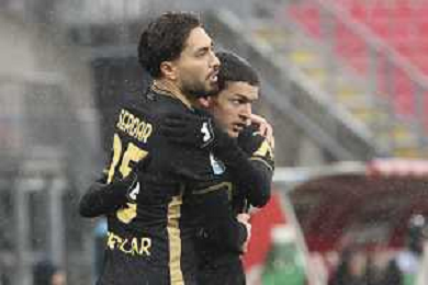 Suat Serdar of Hellas Verona FC hugs Reda Belahyane of Hellas Verona FC during AC Monza vs Hellas Verona FC, 23° Serie A Enilive 2024-25 game at U-Power stadium in Monza (MB), Italy, on February 01, 2025. (Photo by Davide Casentini)- AGENZIA ALDO LIVERANI SAS