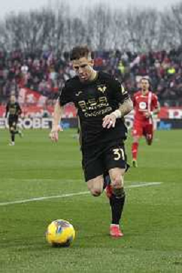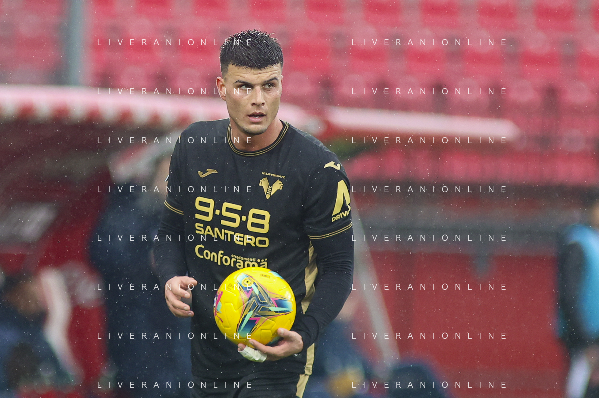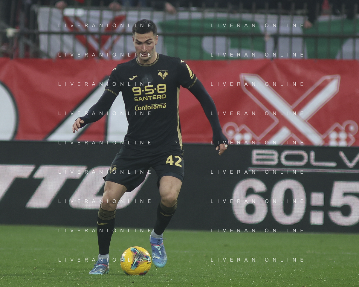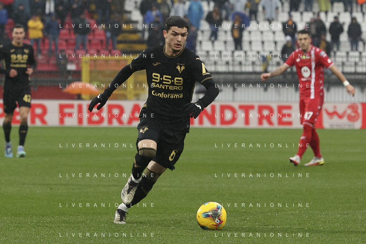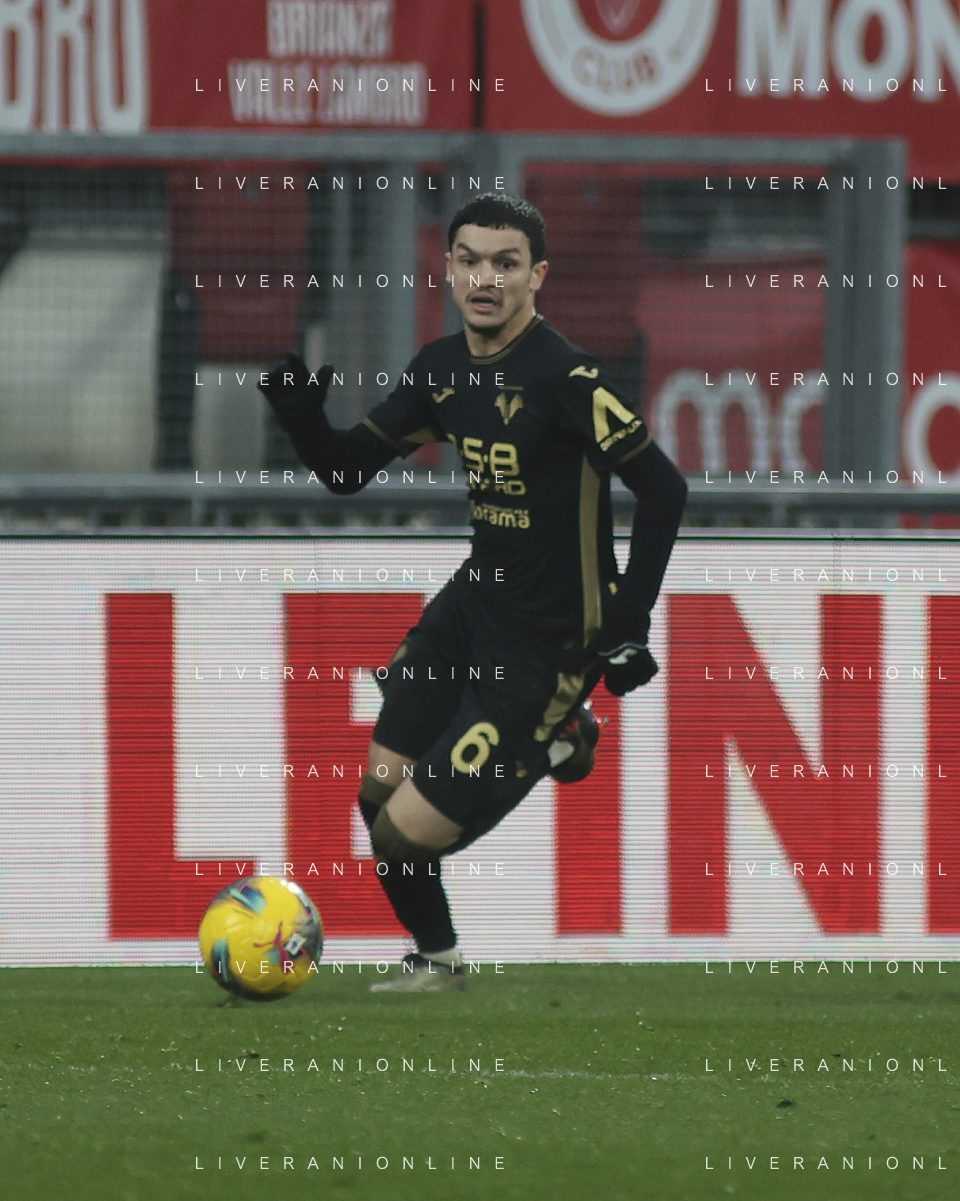 Diego Coppola of Hellas Verona FC play the ball during AC Monza vs Hellas Verona FC, 23° Serie A Enilive 2024-25 game at U-Power stadium in Monza (MB), Italy, on February 01, 2025. (Photo by Davide Casentini)- AGENZIA ALDO LIVERANI SAS