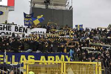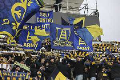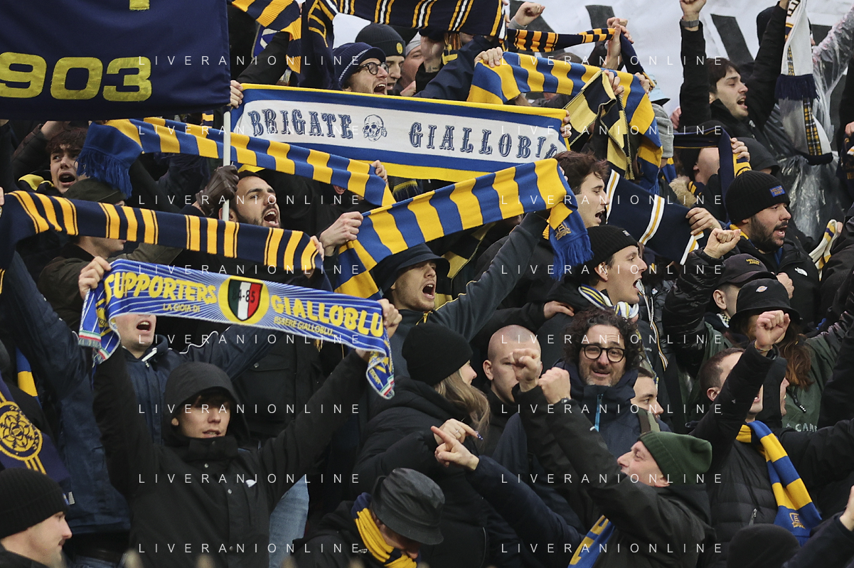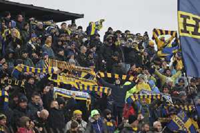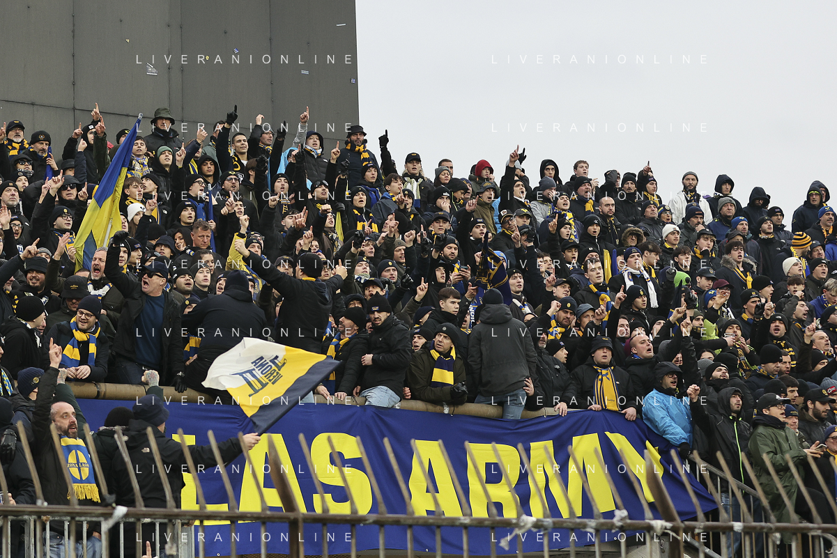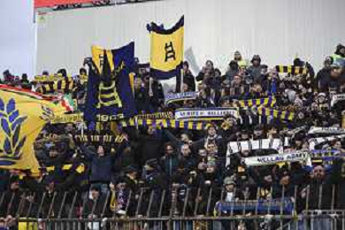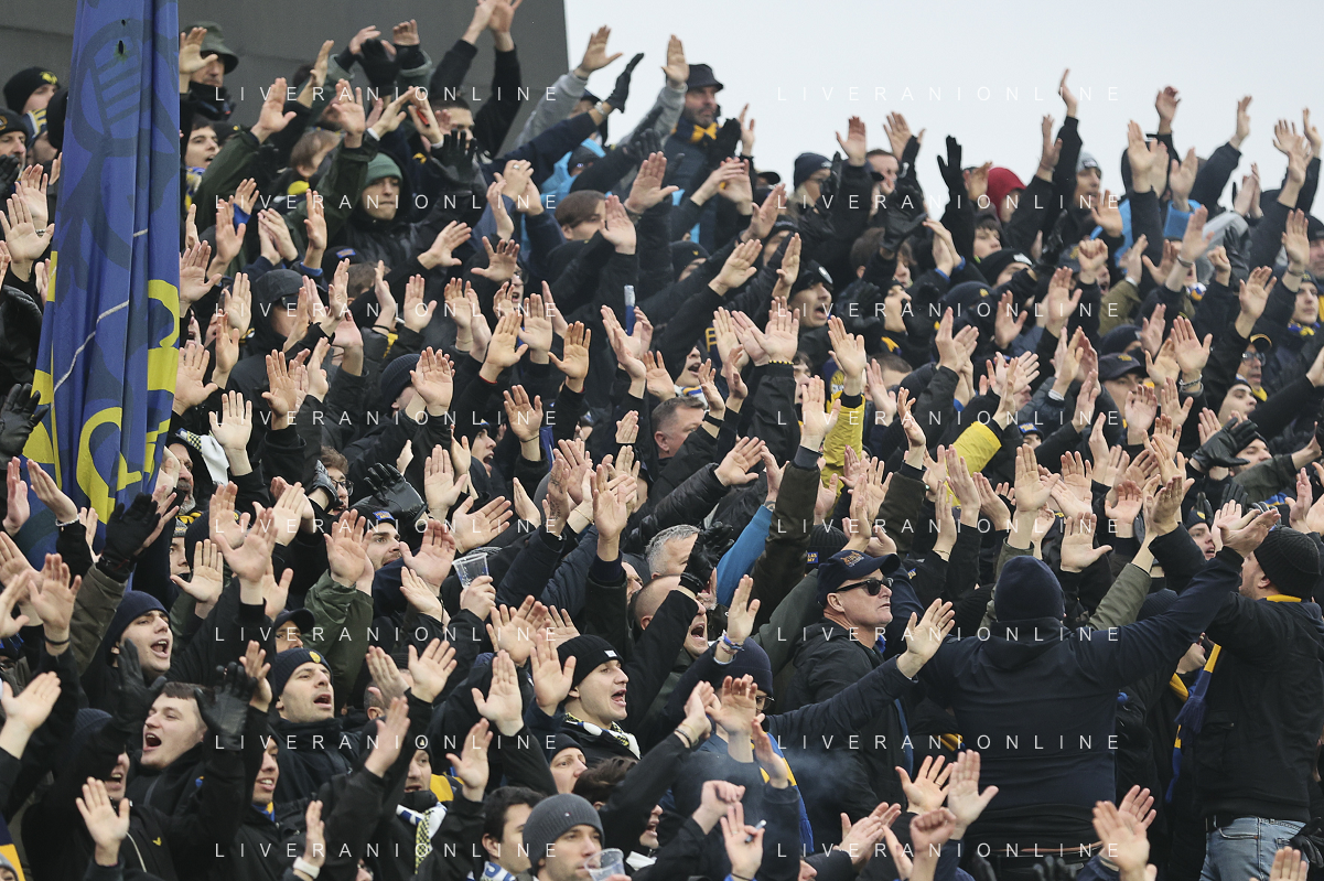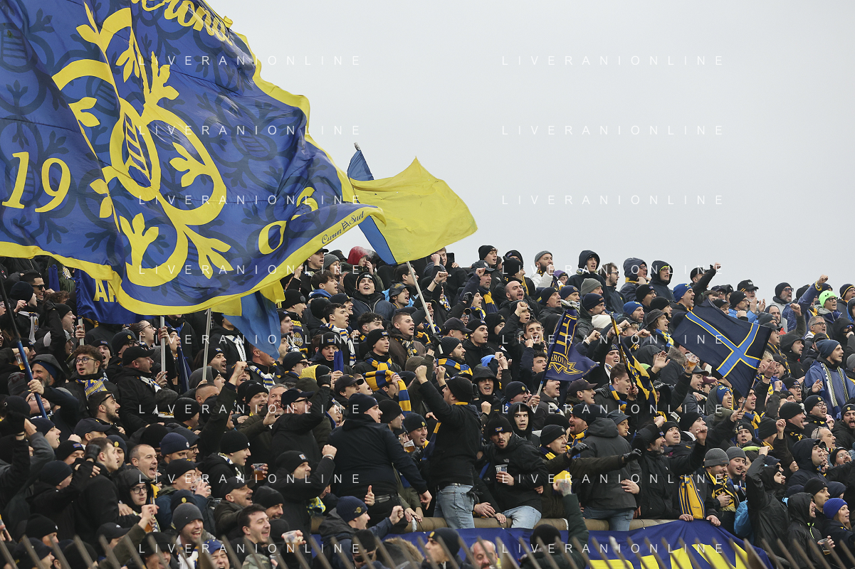 tifosi - Hellas Verona fans show their support during AC Monza vs Hellas Verona FC, 23° Serie A Enilive 2024-25 game at U-Power stadium in Monza (MB), Italy, on February 01, 2025. (Photo by Davide Casentini)- AGENZIA ALDO LIVERANI SAS