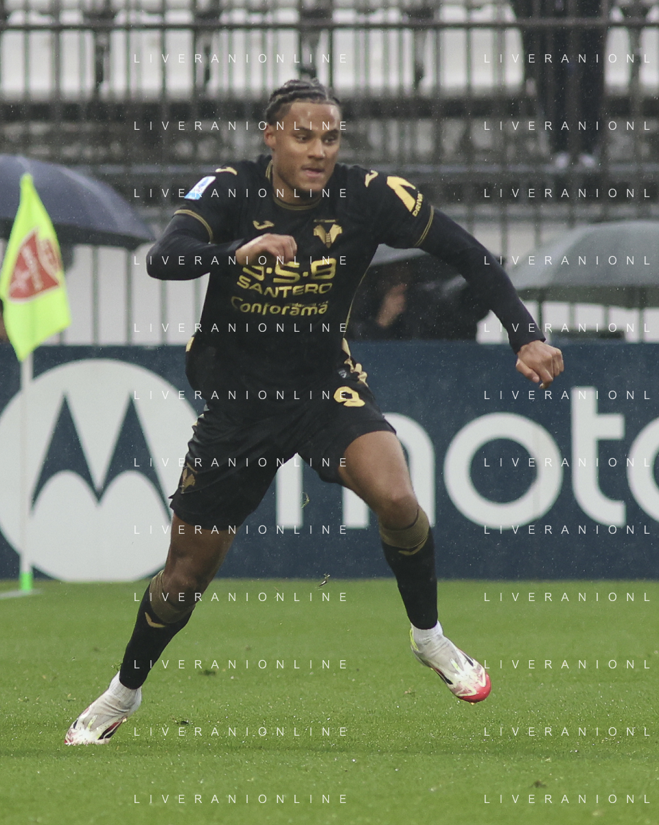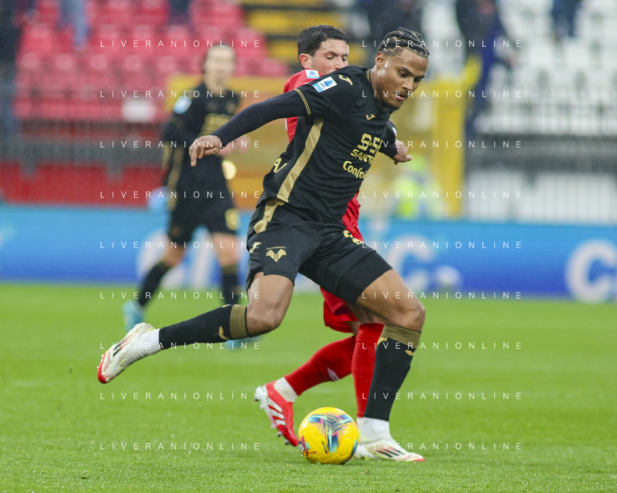 Dailon Rocha Livramento of Hellas Verona FC FC play the ball during AC Monza vs Hellas Verona FC, 23° Serie A Enilive 2024-25 game at U-Power stadium in Monza (MB), Italy, on February 01, 2025. (Photo by Davide Casentini)- AGENZIA ALDO LIVERANI SAS