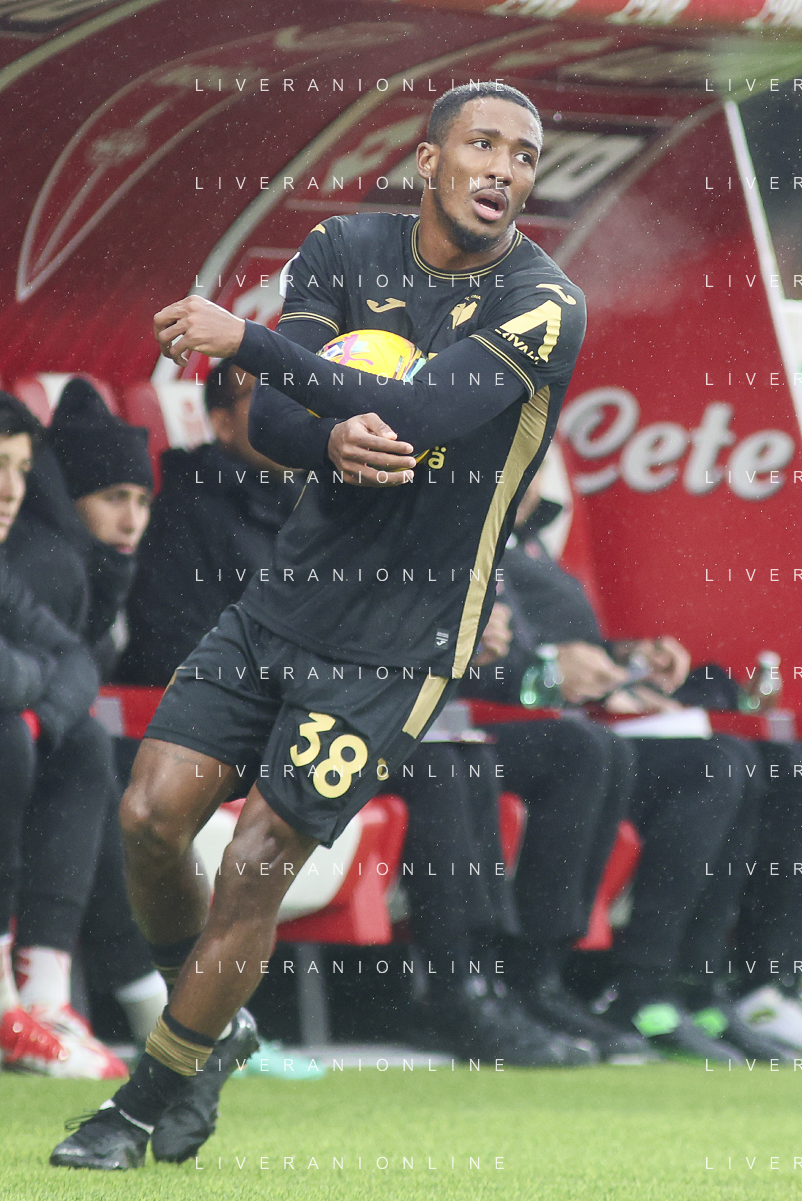 The new player of Hellas Verona, Daniel Oyegoke of Hellas Verona FC during AC Monza vs Hellas Verona FC, 23° Serie A Enilive 2024-25 game at U-Power stadium in Monza (MB), Italy, on February 01, 2025. (Photo by Davide Casentini)- AGENZIA ALDO LIVERANI SAS