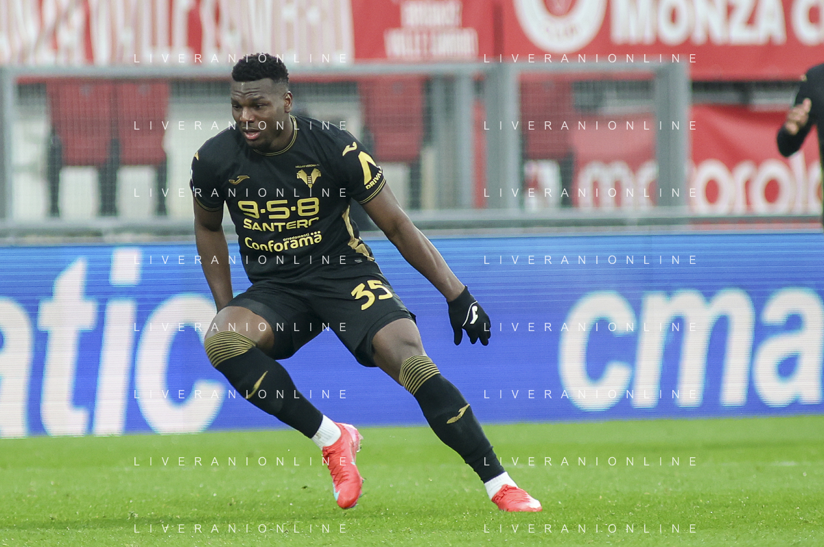 Amin Sarr of Hellas Verona FC competes for the ball during AC Monza vs Hellas Verona FC, 23° Serie A Enilive 2024-25 game at U-Power stadium in Monza (MB), Italy, on February 01, 2025. (Photo by Davide Casentini)- AGENZIA ALDO LIVERANI SAS