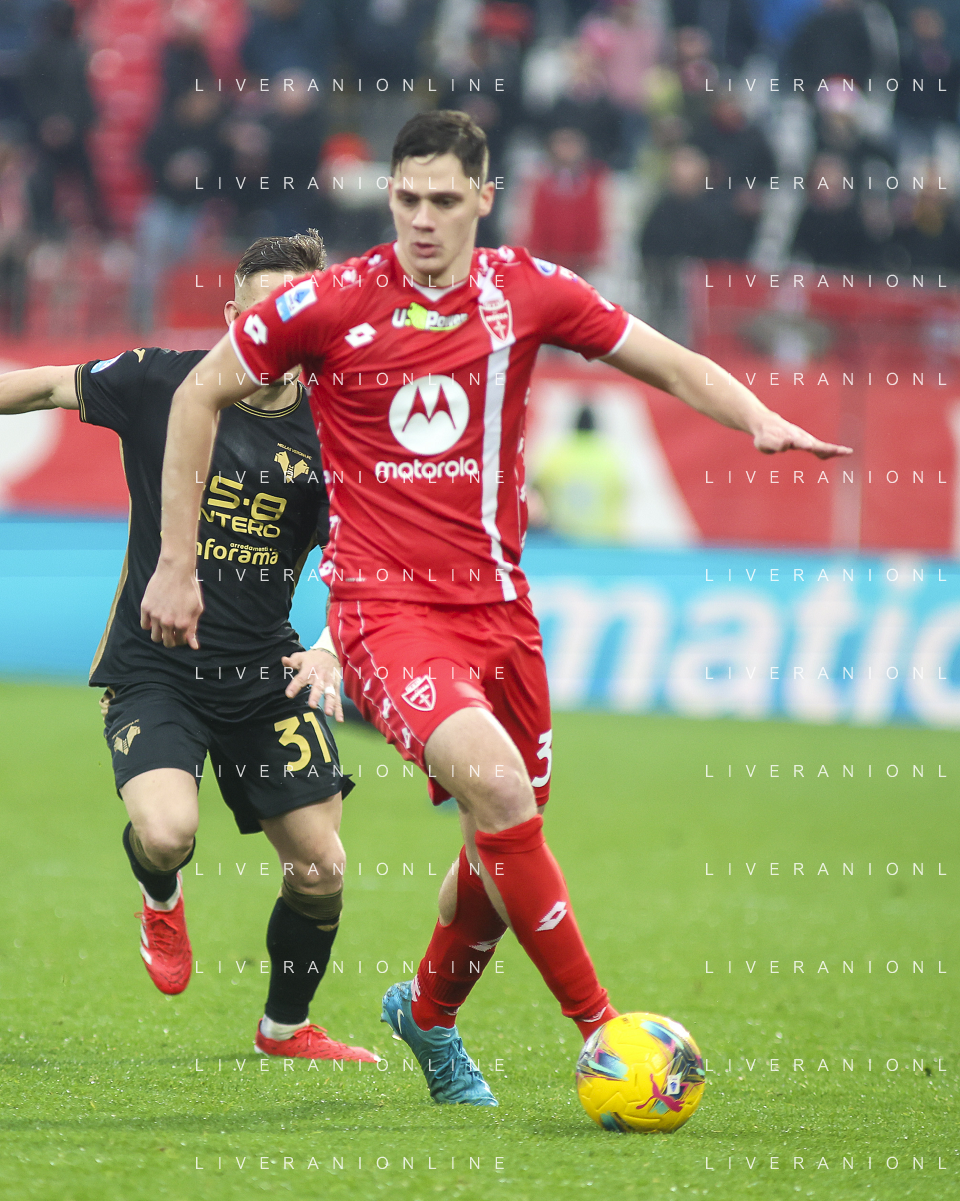Stefan Lekovic of AC Monza play the ball during AC Monza vs Hellas Verona FC, 23° Serie A Enilive 2024-25 game at U-Power stadium in Monza (MB), Italy, on February 01, 2025. (Photo by Davide Casentini)- AGENZIA ALDO LIVERANI SAS