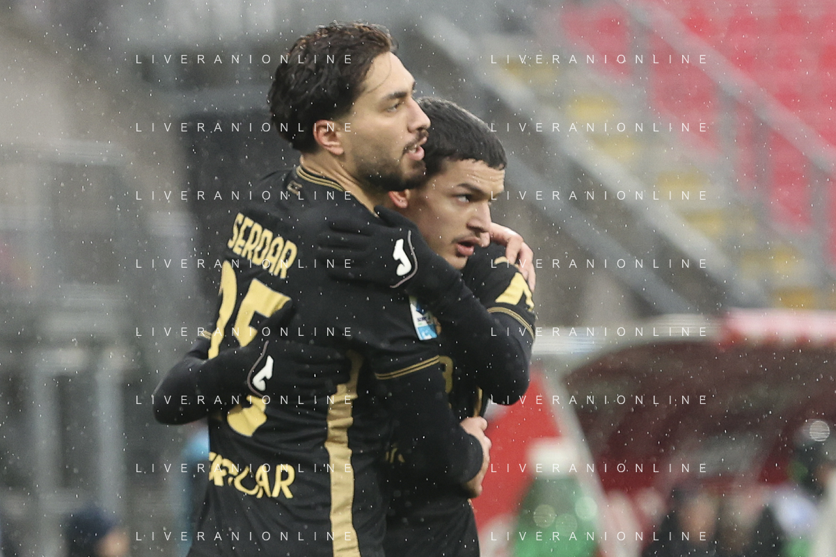Suat Serdar of Hellas Verona FC and the players jubilates after scoring the goal during AC Monza vs Hellas Verona FC, 23° Serie A Enilive 2024-25 game at U-Power stadium in Monza (MB), Italy, on February 01, 2025. (Photo by Davide Casentini)- AGENZIA ALDO LIVERANI SAS