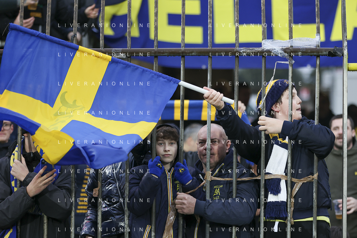 Tifosi - Hellas Verona fans show their support during AC Monza vs Hellas Verona FC, 23° Serie A Enilive 2024-25 game at U-Power stadium in Monza (MB), Italy, on February 01, 2025. (Photo by Davide Casentini)- AGENZIA ALDO LIVERANI SAS