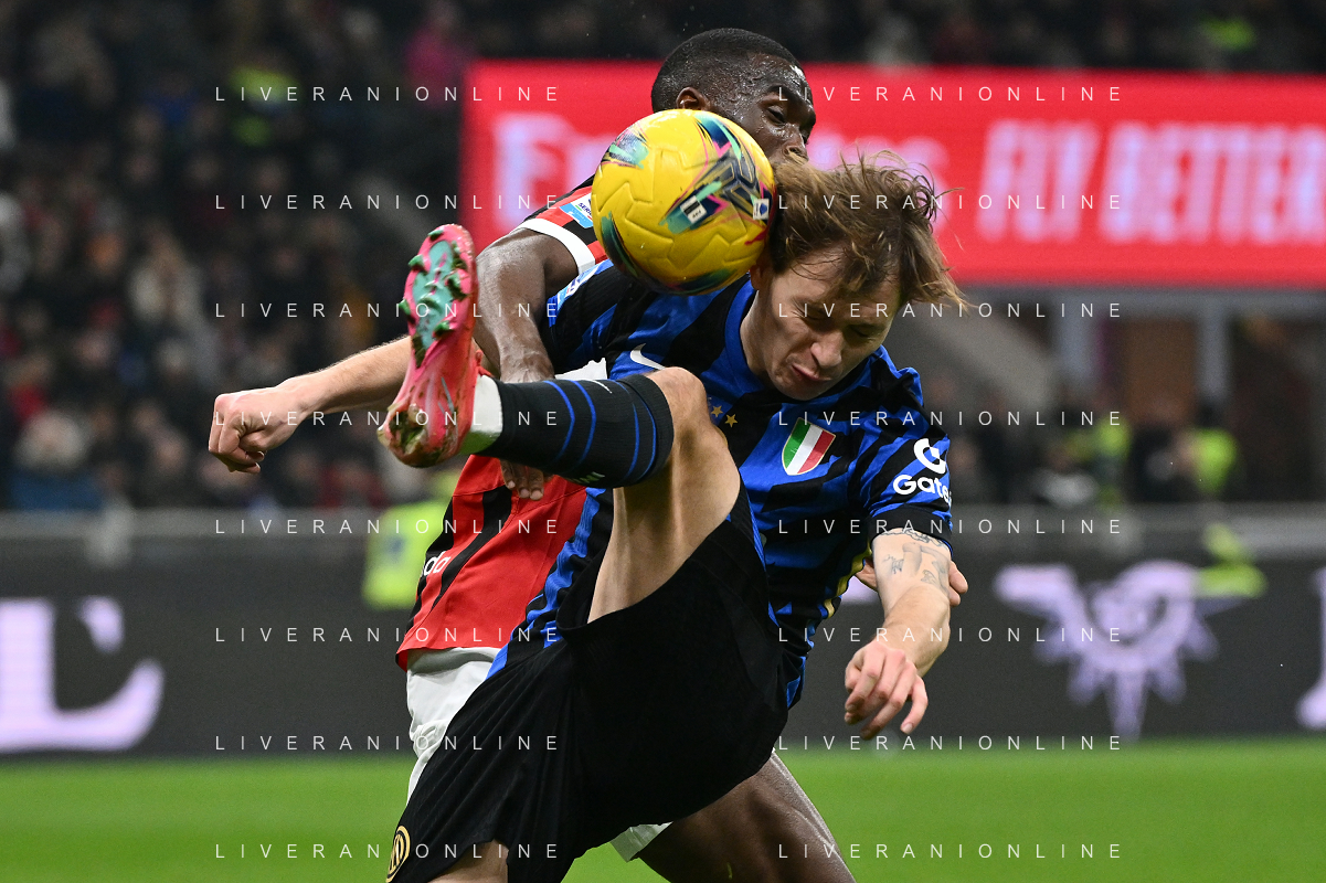 Milan vs Inter nella foto Nicolò Barella (Inter) e dietro Fikayo Tomori (Milan) Milano 02-02-2025 Stadio Giuseppe Meazza - San Siro Campionato Serie A Enilive - 23a giornata foto Roberto Garavaglia/Agenzia Aldo Liverani sas