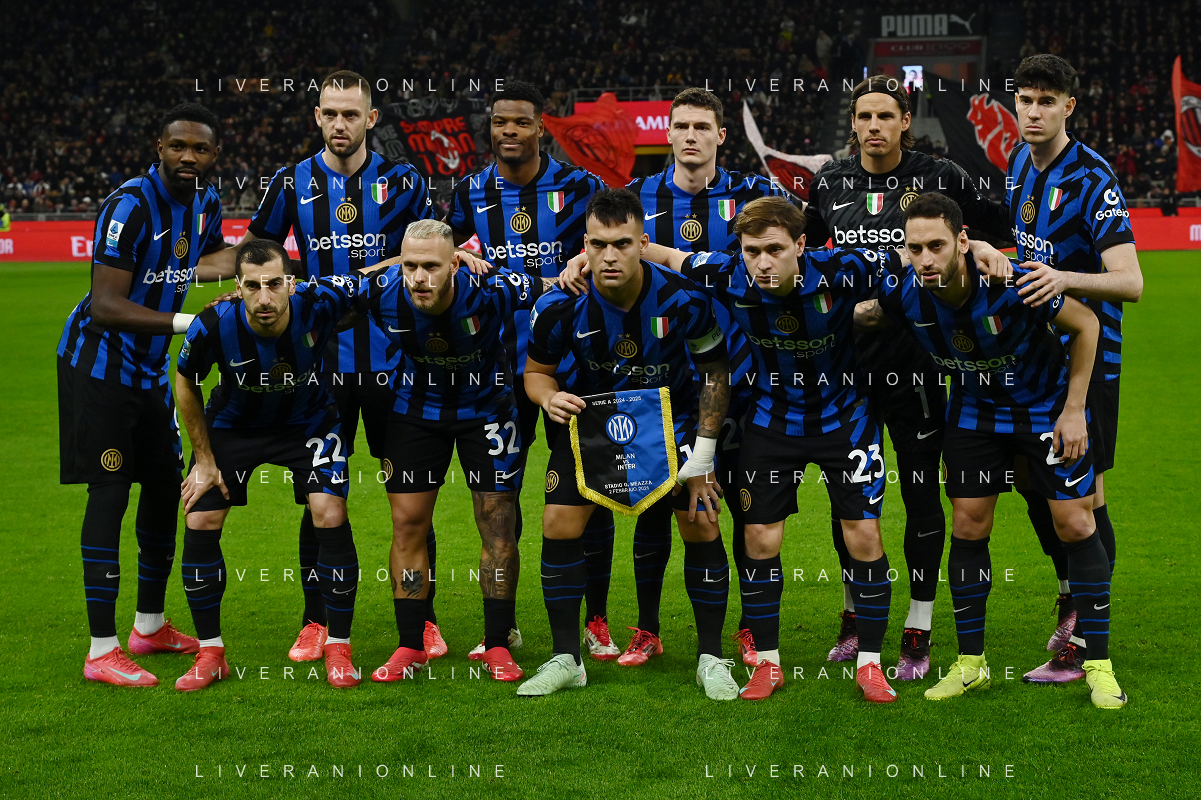 Milan vs Inter nella foto formazione Inter, in piedi da SX Marcus Thuram, Stefan de Vrij , Denzel Dumfries, Benjamin Pavard, Yann Sommer e Alessandro Bastoni; in basso da SX Henrikh Mkhitaryan, Federico Dimarco, Lautaro Martinez, Nicolò Barella e Hakan Calhanoglu Milano 02-02-2025 Stadio Giuseppe Meazza - San Siro Campionato Serie A Enilive - 23a giornata foto Roberto Garavaglia/Agenzia Aldo Liverani sas