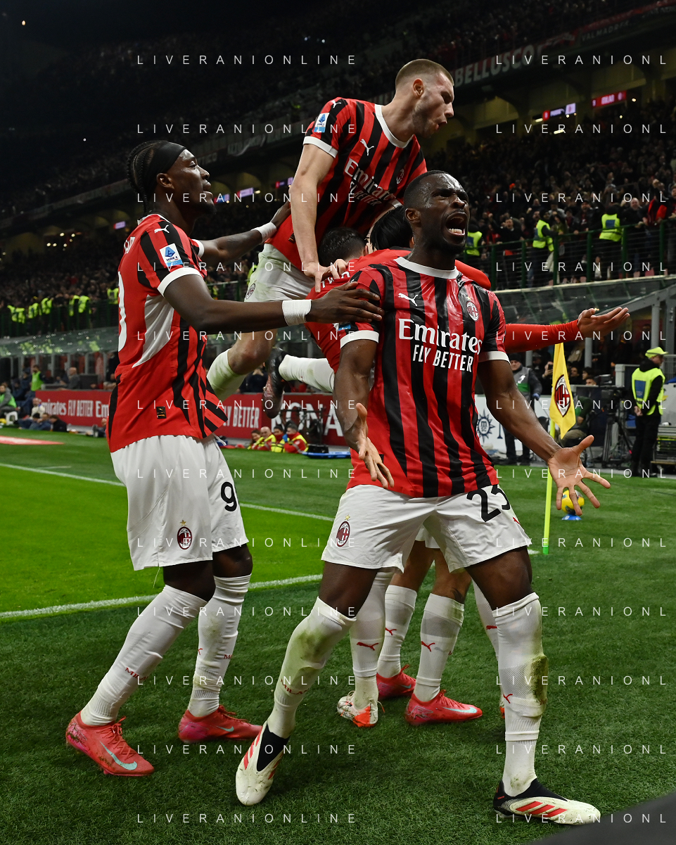 Milan vs Inter nella foto giocatori Milan esultanza dopo il gol dell'1 a 0 Milano 02-02-2025 Stadio Giuseppe Meazza - San Siro Campionato Serie A Enilive - 23a giornata foto Roberto Garavaglia/Agenzia Aldo Liverani sas