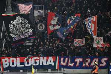 TVRG Atalanta vs Bologna nella foto tifosi Bologna Bergamo 04-02-2025 Gewiss Stadium Coppa Italia Frecciarossa - quarti di finale foto Roberto Garavaglia/Agenzia Aldo Liverani sas